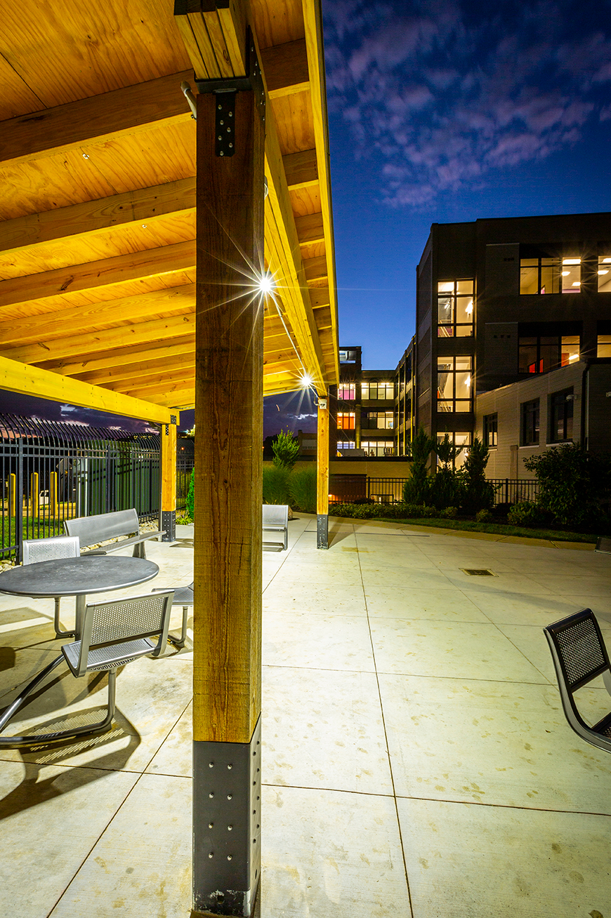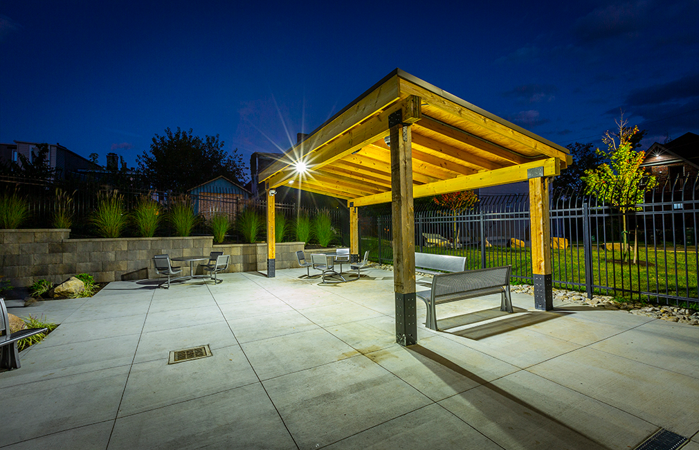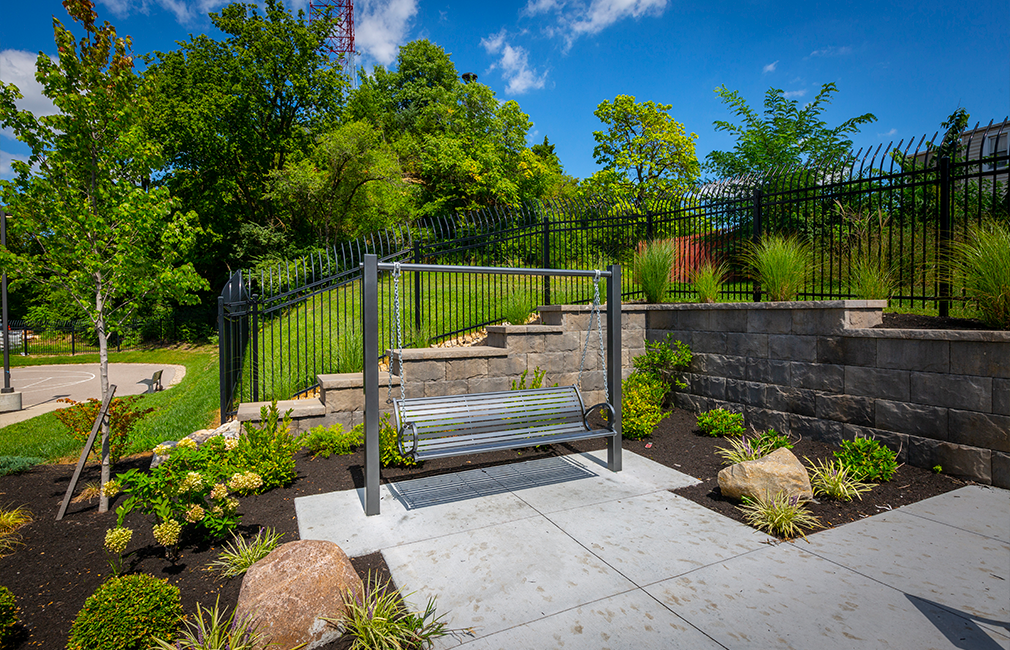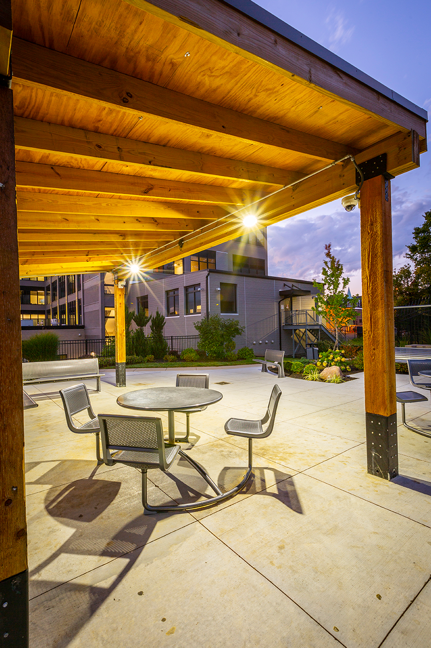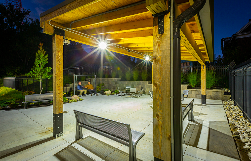 Sheakley Center Terrace is a new outdoor gathering space and terrace for the Lighthouse Sheakley Center for Youth in Cincinnati. The Center is a shelter where homeless young adults learn self-reliance and life skills.