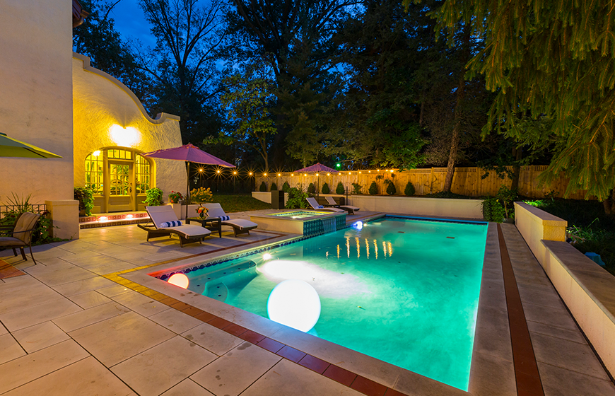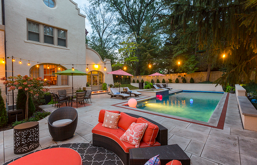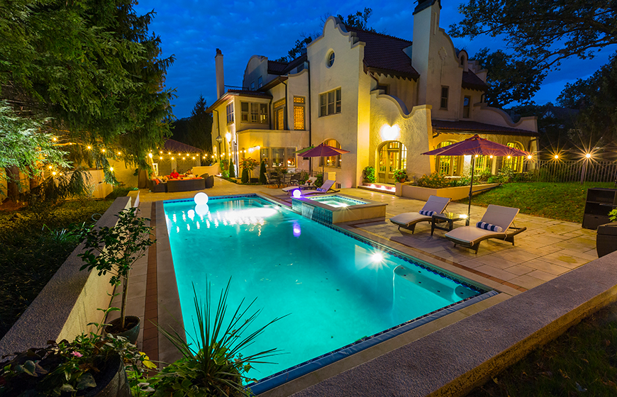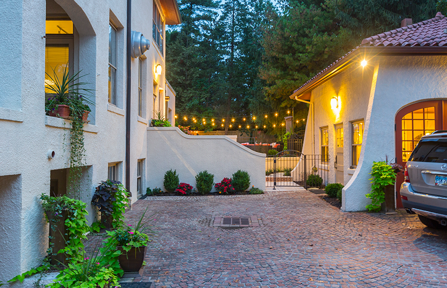 Secondly the pool terrace was added in 2021 including plastered walls at a new staircase which provide a layered separation between motor court and terrace while providing a connection between existing house kitchen, the new parrilla kitchen and the new pool terrace.